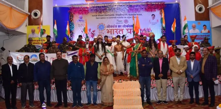 गणतंत्र दिवस की संध्या पर मानस भवन गुना में लोकतंत्र का लोकोत्सव ‘भारत पर्व’ का आयोजन किया गया। कार्यक्रम का शुभारंभ मां सरस्वती जी के चित्र के समक्ष दीप प्रज्जवलित कर किया गया। इसी कार्यक्रम में नेशन उ.मा.वि. के छात्र-छात्राओं ने सांस्कृतिक कार्यक्रम की प्रस्तुति दी। इस प्रस्तुति की अतिथियों द्वारा अत्यंत प्रशंसा की गई। सभी दर्शकों द्वारा भी प्रस्तुति को सराहा गया। इसके अतिरिक्त विभिन्न कलाकारों द्वारा देश भक्ति गीत एवं सांस्कृतिक नृत्य प्रस्तुत किये गये। कार्यक्रम में नगर पालिका अध्यक्ष श्रीमति सविता अरविंद गुप्ता एवं अपर कलेक्टर श्री अखिलेश जैन, अतिरिक्त मुक्त कार्यपालन अधिकारी जिला पंचायत श्री विशाल सिंह, रोजगार अधिकारी श्री बी.एस.मीना, जिला शिक्षा अधिकारी श्री सीएस सिसोदिया, डीपीसी श्री ऋषि शर्मा, महिला एवं बाल विकास अधिकारी श्री दिनेश चंदेल एवं शासकीय विद्यालयों के प्राचार्य सहित अन्य गणमान्य नागरिक एवं पत्रकारगण उपस्थित थे। कार्यक्रम का मंच संचालन प्राचार्य सीएम राइज श्री आशीष टांटिया द्वारा किया गया |
